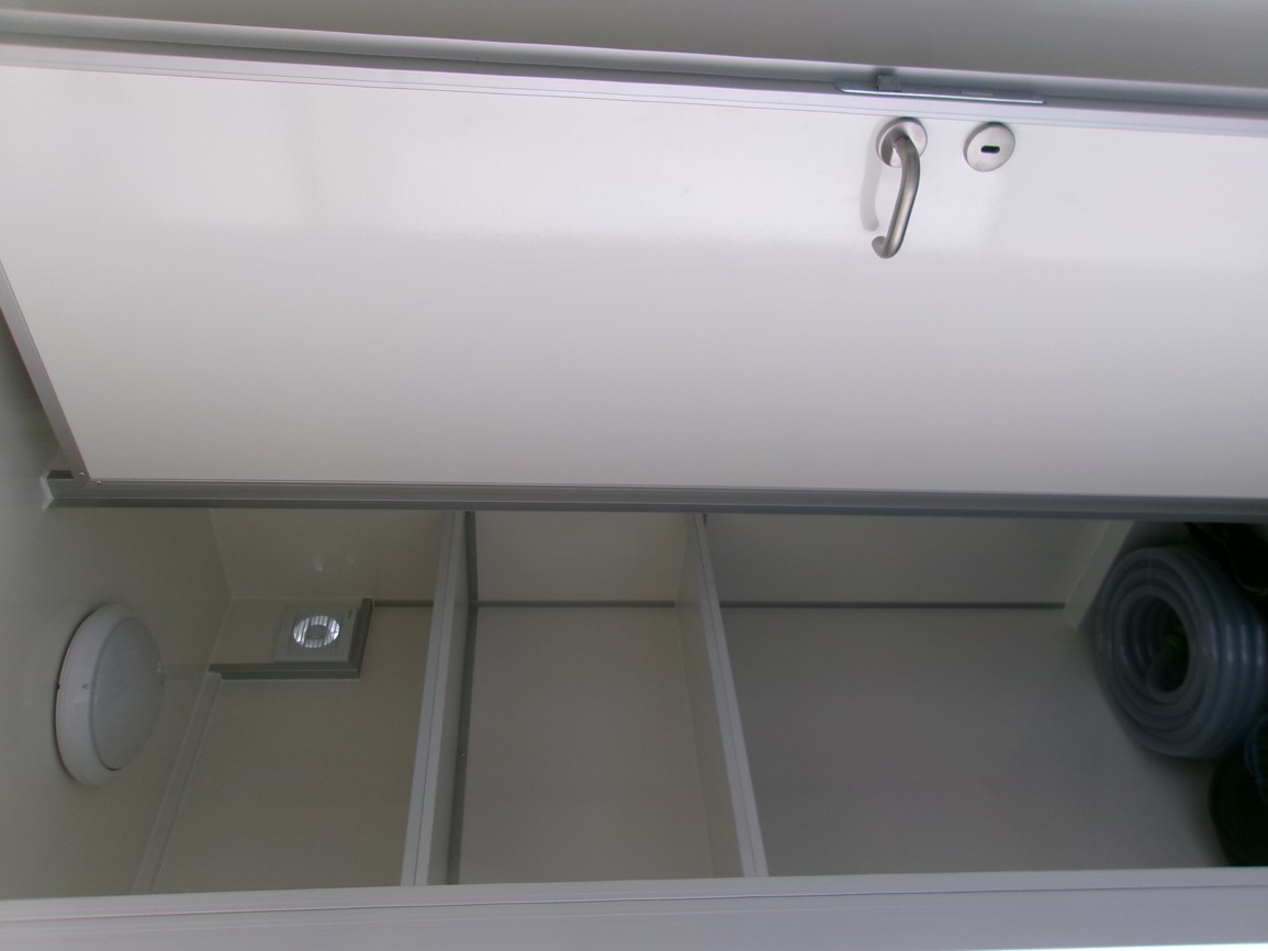 - Frischwasser-(300 l) und Abwasser- (150 l aus Toilette und anderer für 200 l) Behälter + Wasserpumpe (230 V) + Ultraschallsensor und Wasserstand-Anzeige