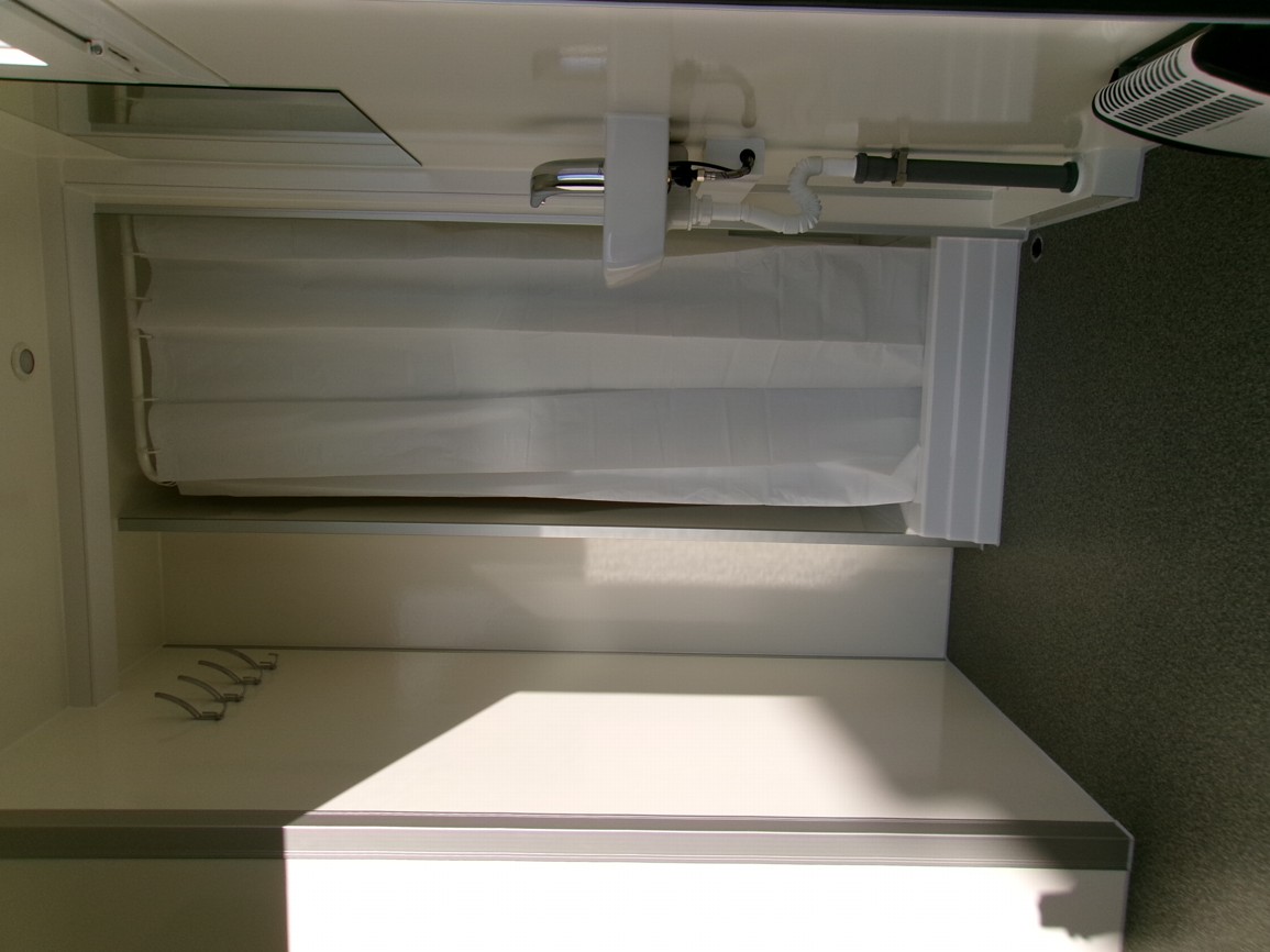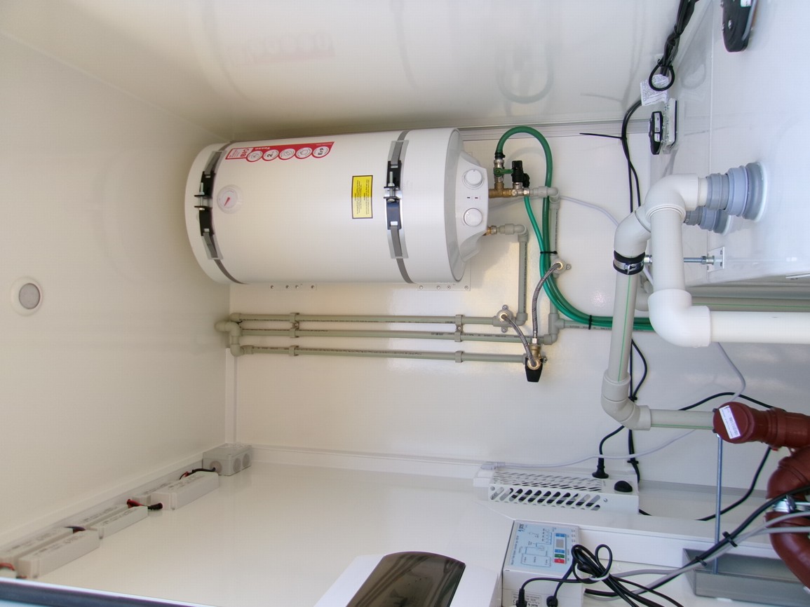 - Frischwasser-(250 l) und 2x Abwasser- (150 + 200 l) Behälter + Wasserpumpe (12 V) + Ultraschallsensor und Wasserstand-Anzeige