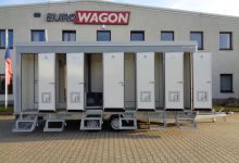 Dopravní uzly: Slouží jako dočasné toalety a sprchy pro cestující na nádražích, letištích nebo autobusových terminálech během rekonstrukcí nebo zvýšeného provozu.
