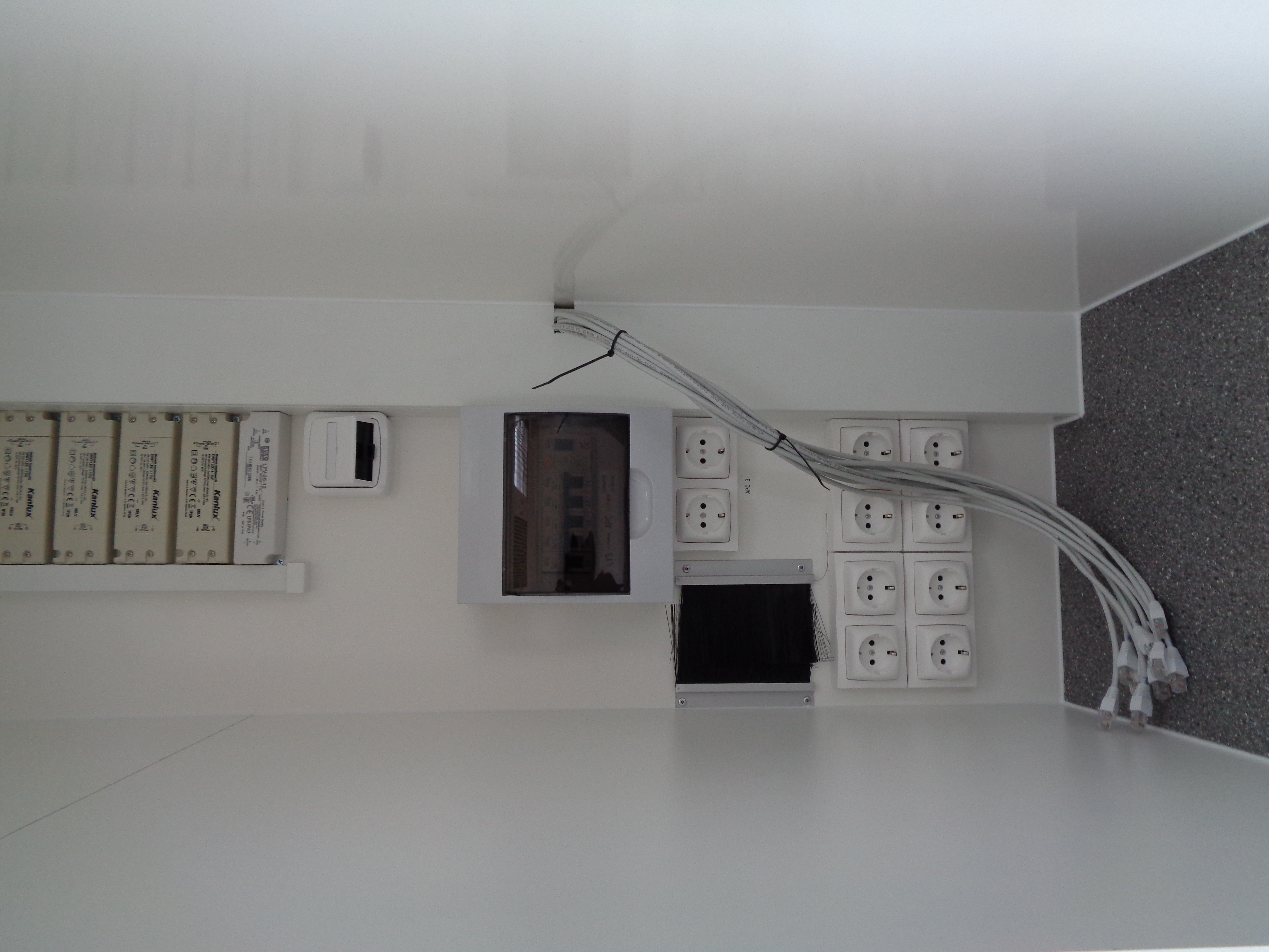 - 2 Büros mit Glaswand abgeteilt und mit Steckdosenset, Datensteckdosen und UPS APC unterbrechungsfreie Stromversorgung ausgerüstet