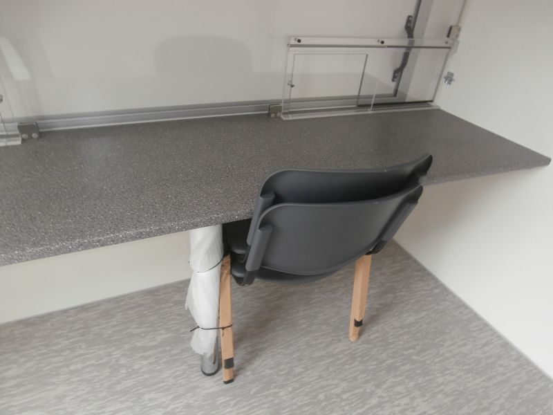 Kasse mit Plexiglasfenster mit 2 Schiebfensterchen