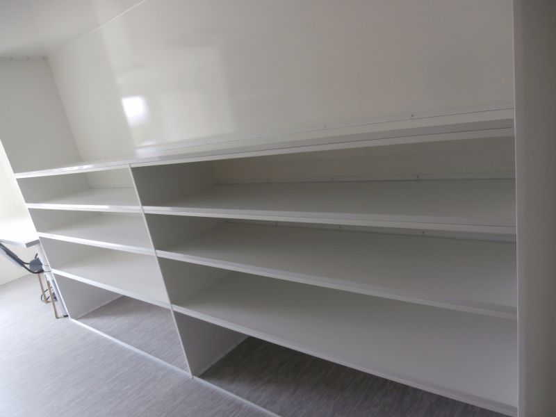 Bürowagen - Typ 2621-61. Das Büro ausgestattet mit dem Tisch, dem Stuhl und den Regalen
