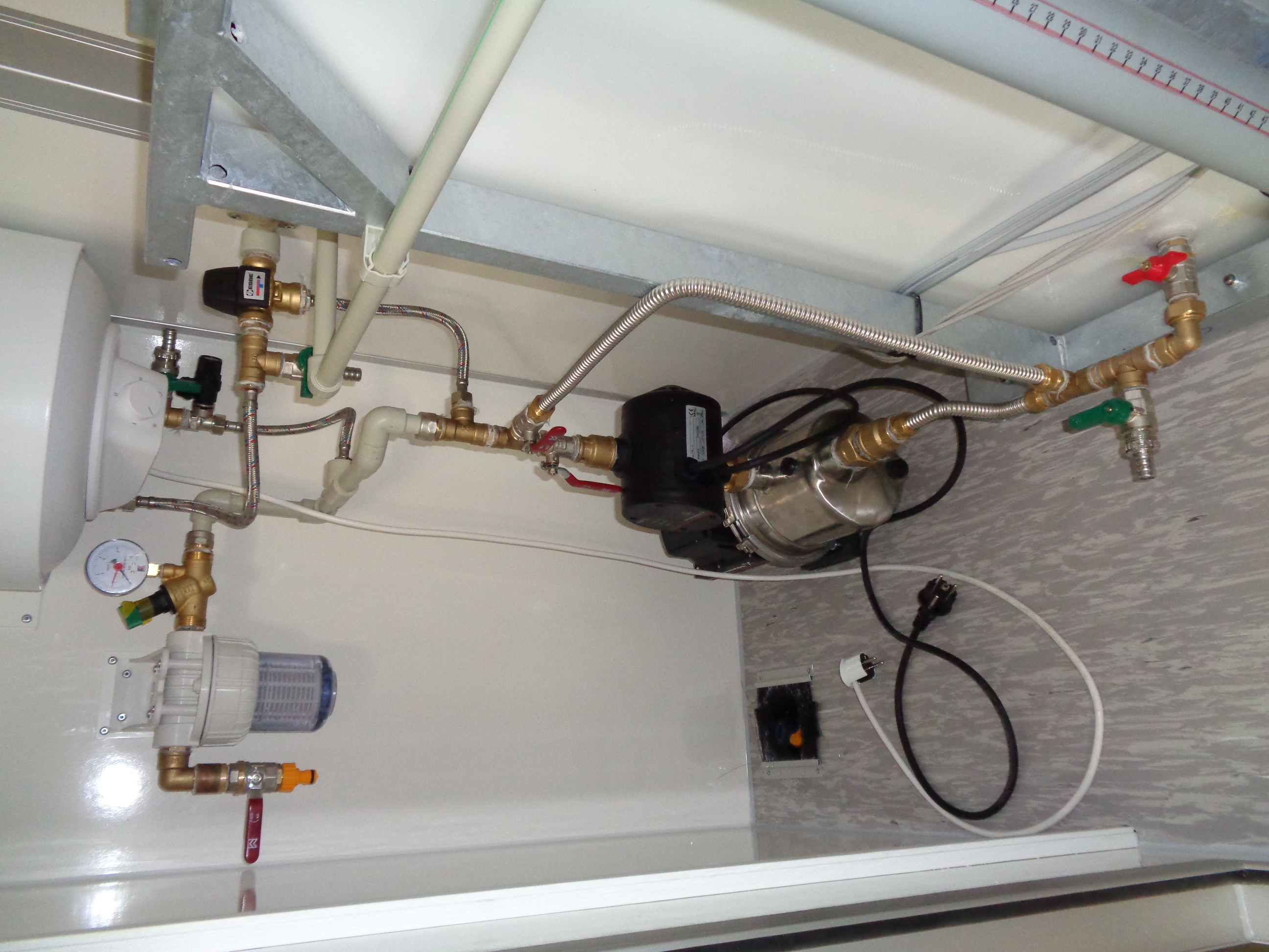- Abwasser- (850L) und Frischwassertank (850L) mit Wasserpumpe