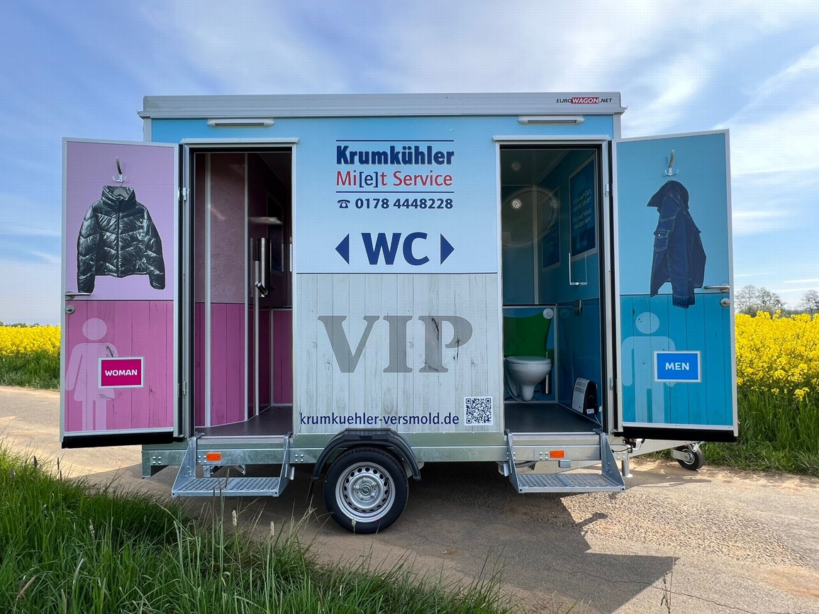 - attraktiv und bunt WC Mobileanhänger mit 2 Kabinen