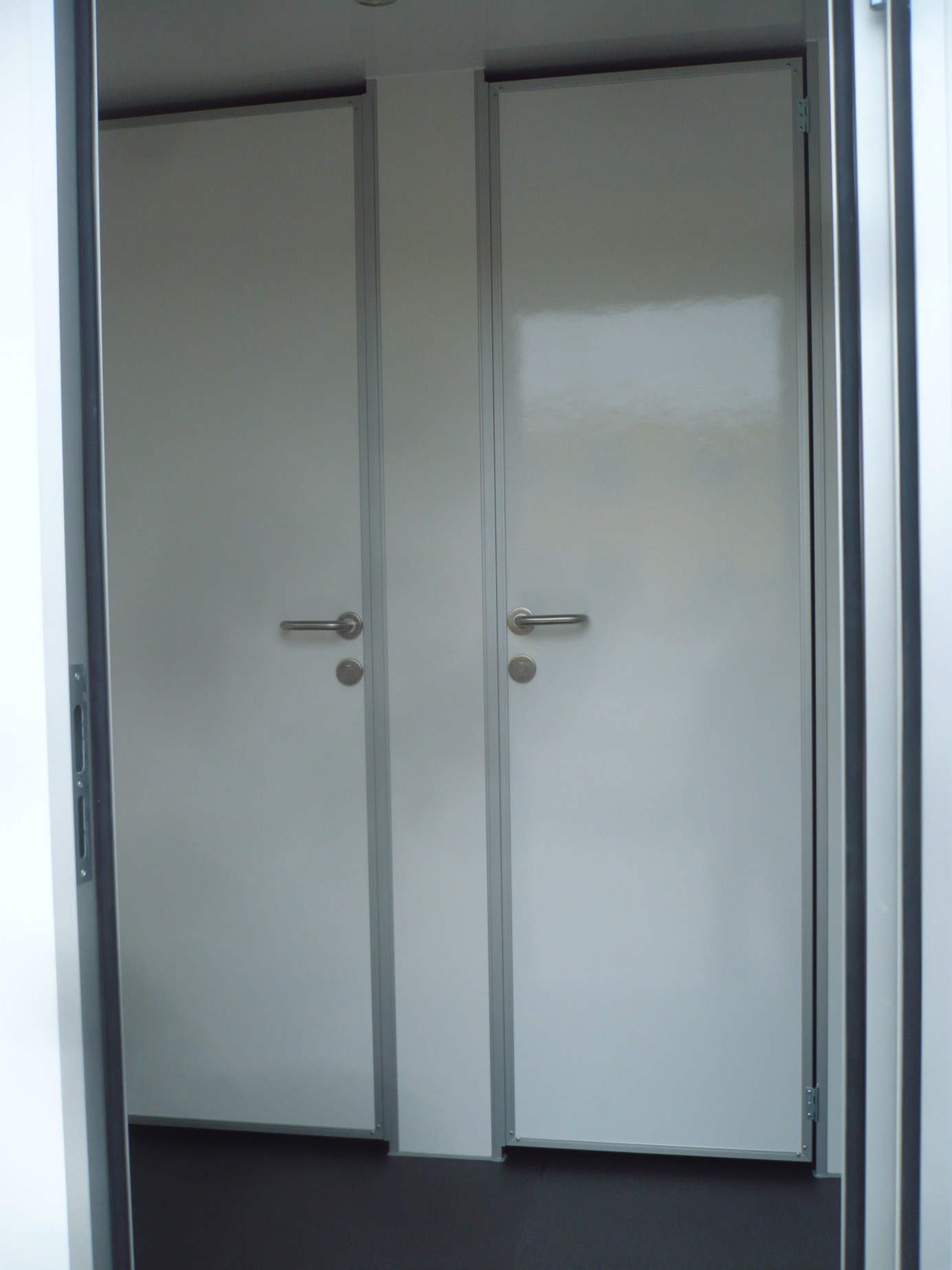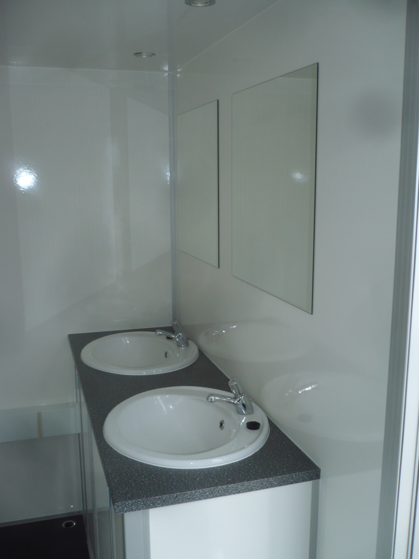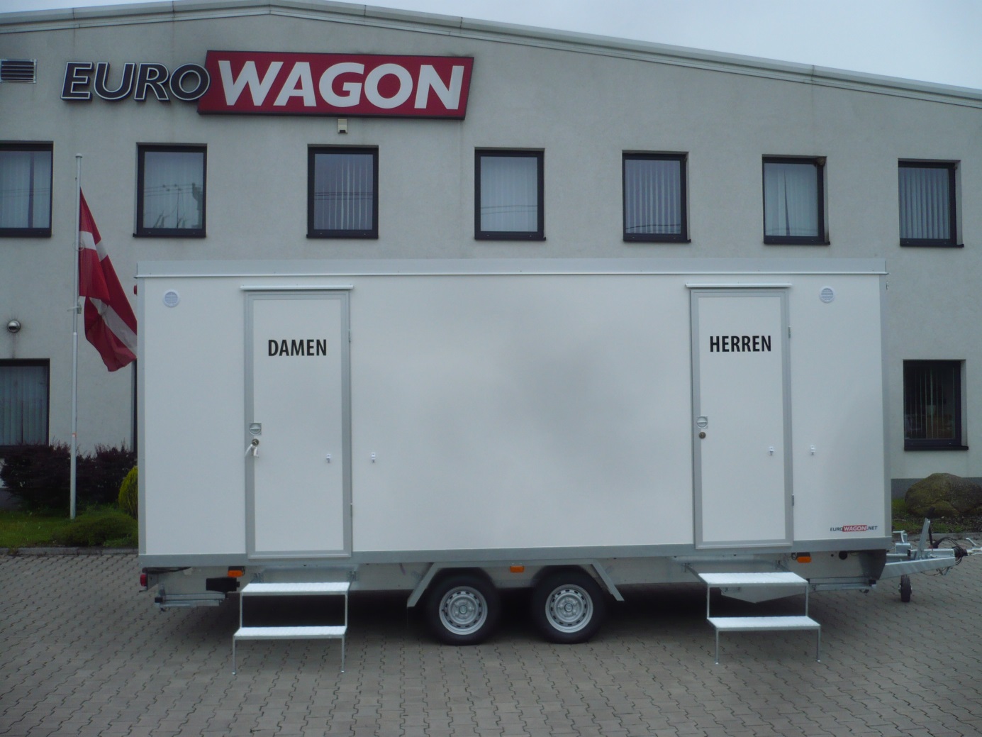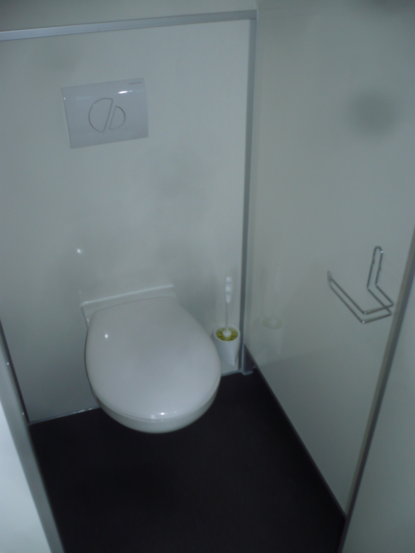 Elektricky vytápěná sanitární mobilní buňka vybavená čtyřmi dámskými toaletami, jednou toaletou pánskou a čtyřmi pisoáry. Nedílnou součástí buňky jsou umyvadla se zrcadly.
