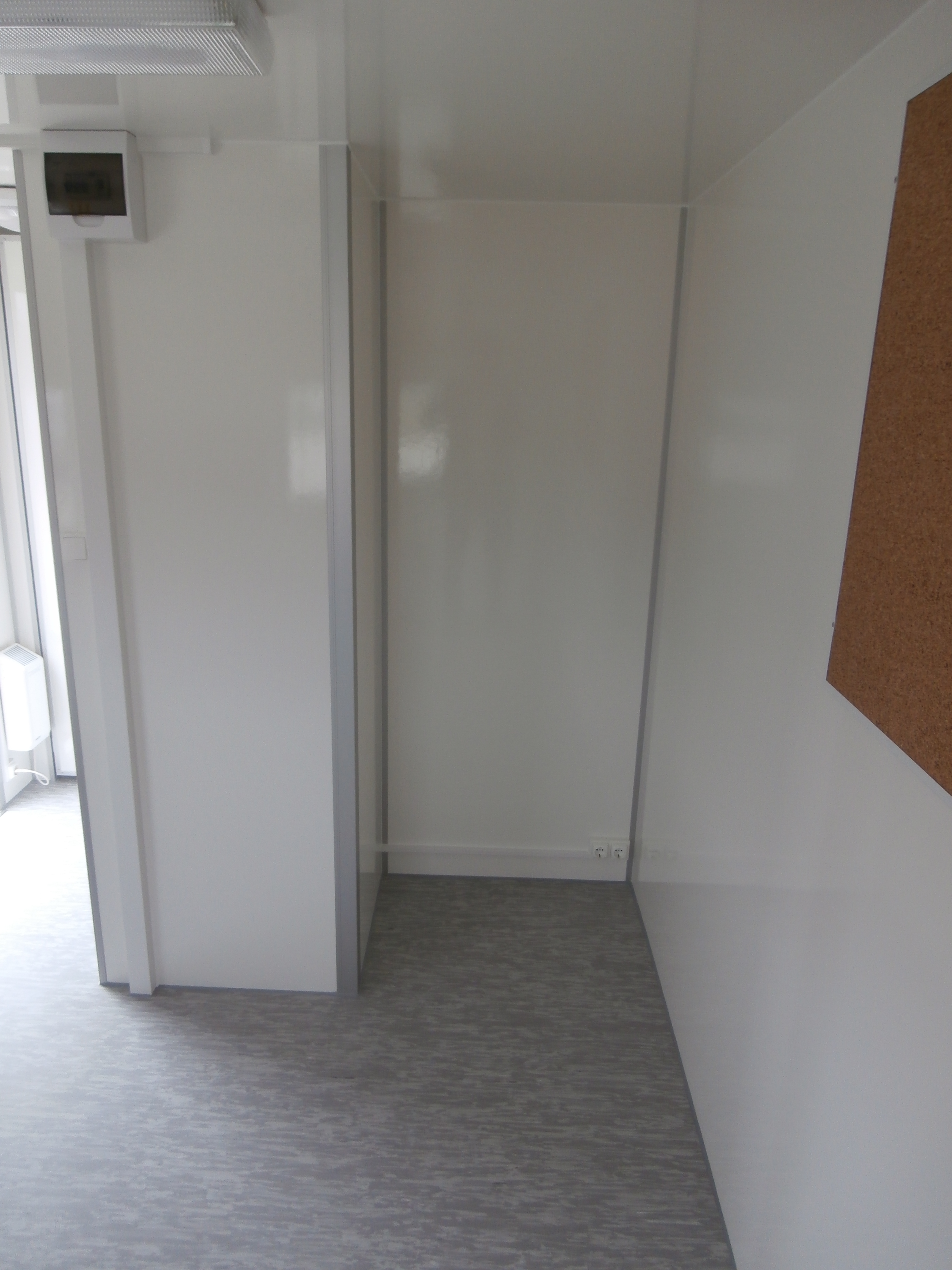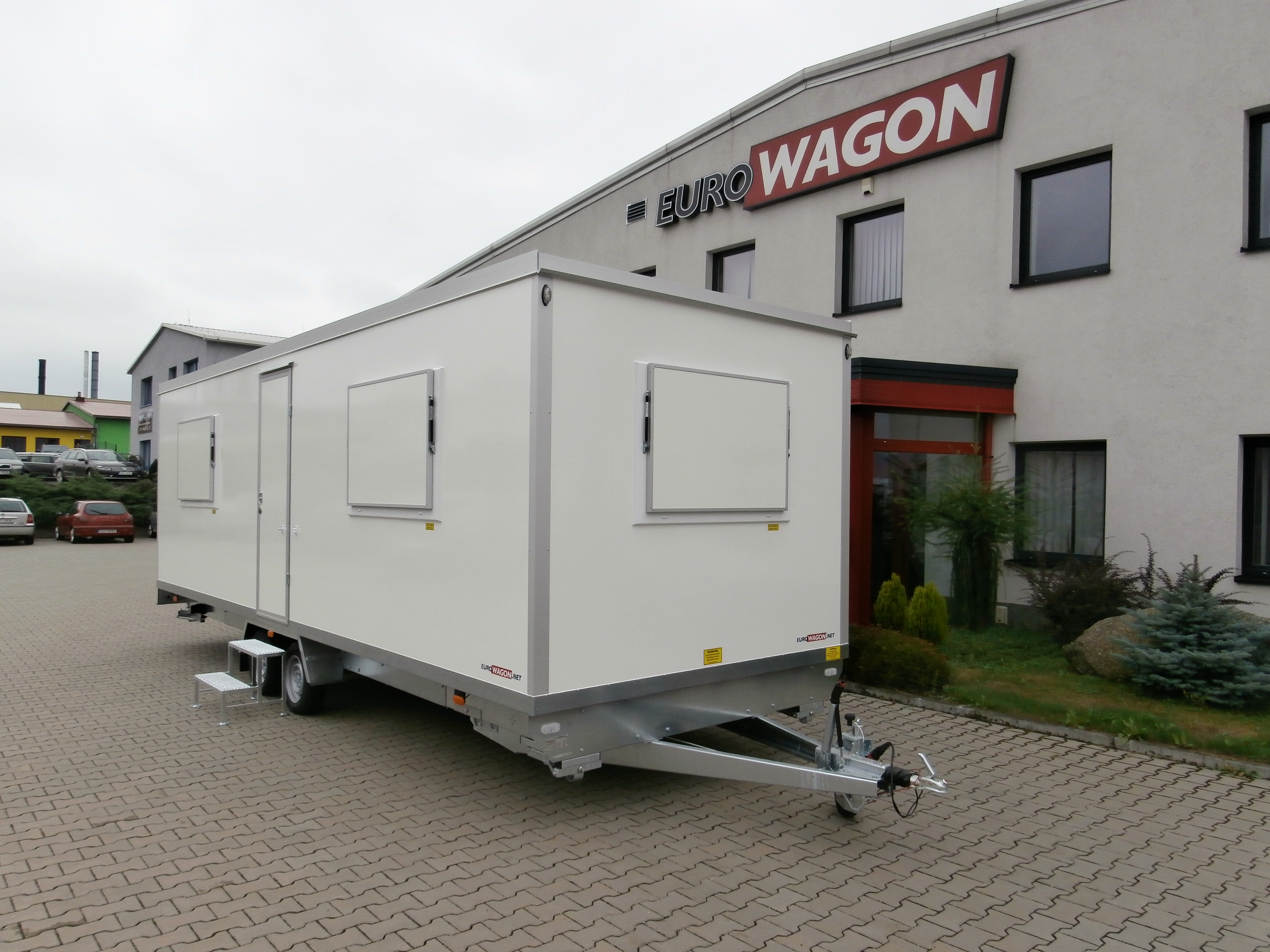 Mobilní buňka se dvěma místnostmi pro kancelářské účely – buňka je elektricky vytápěná, vybavená policemi, bez WC.