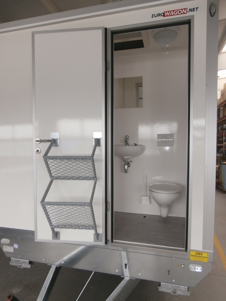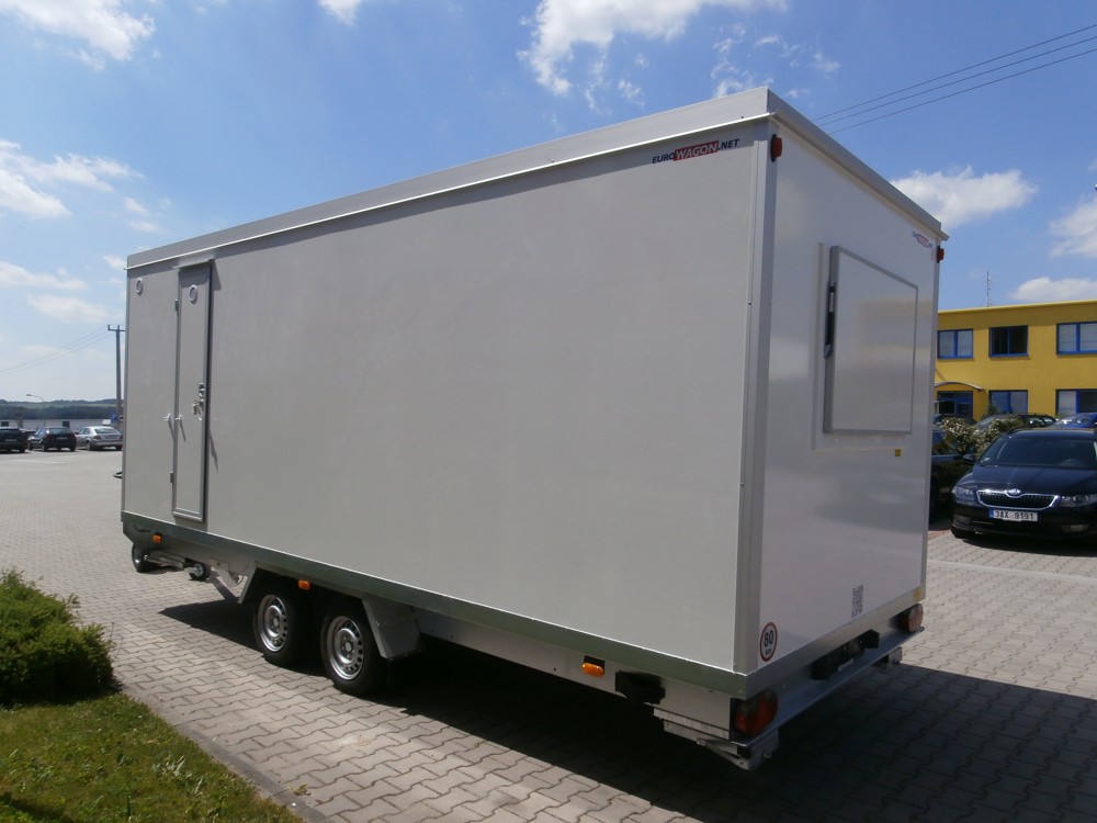 Elektrisch beheizte Wagen für 10-12 Personen, ausgestattet mit Büro/Speiseraum mit Kühlschrank, Badezimmer mit Toilette, Waschbecken mit Spiegel.