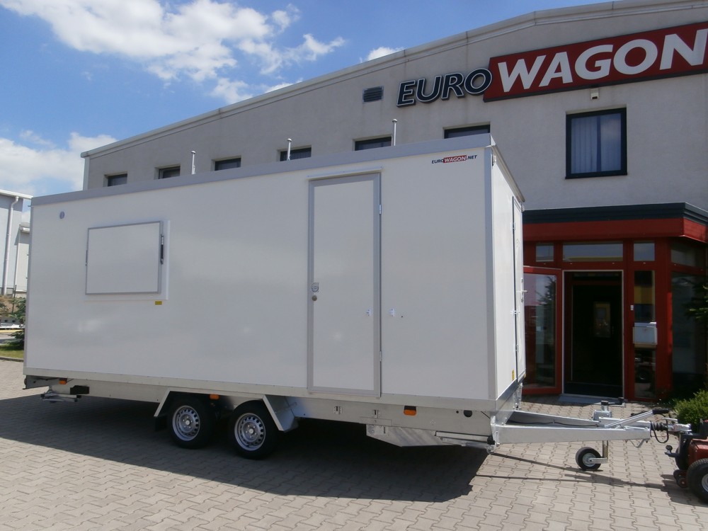 Elektrisch beheizte Wagen für 10-12 Personen, ausgestattet mit Büro/Speiseraum mit Kühlschrank, Badezimmer mit Tanktoilette, Waschbecken mit Spiegel.
