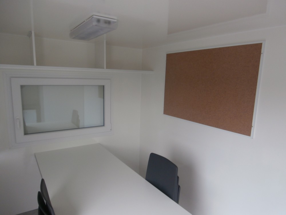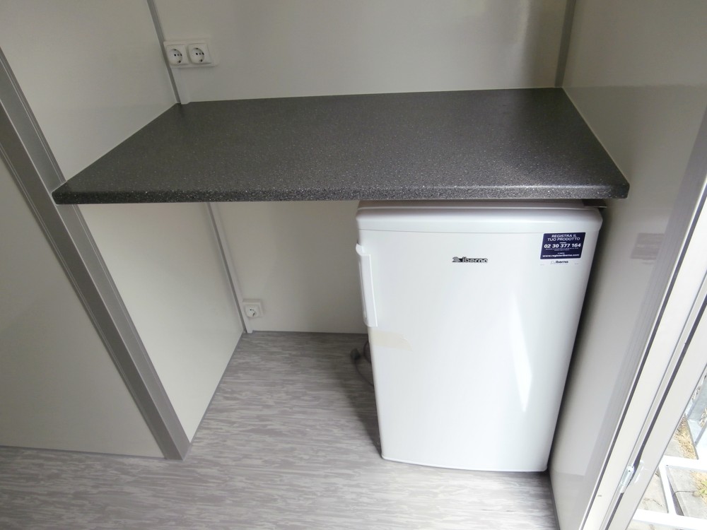 Elektrisch beheizte Wagen für vier Personen, ausgestattet mit Büro/Speiseraum mit Kühlschrank, Badezimmer mit Tanktoilette, Waschbecken mit Spiegel.