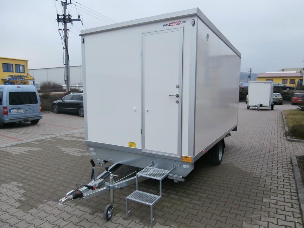 Elektrisch beheizte Wagen für 6-8 Personen, ausgestattet mit Büro/Speiseraum mit Kühlschrank, Badezimmer mit Toilette, Waschbecken mit Spiegel.