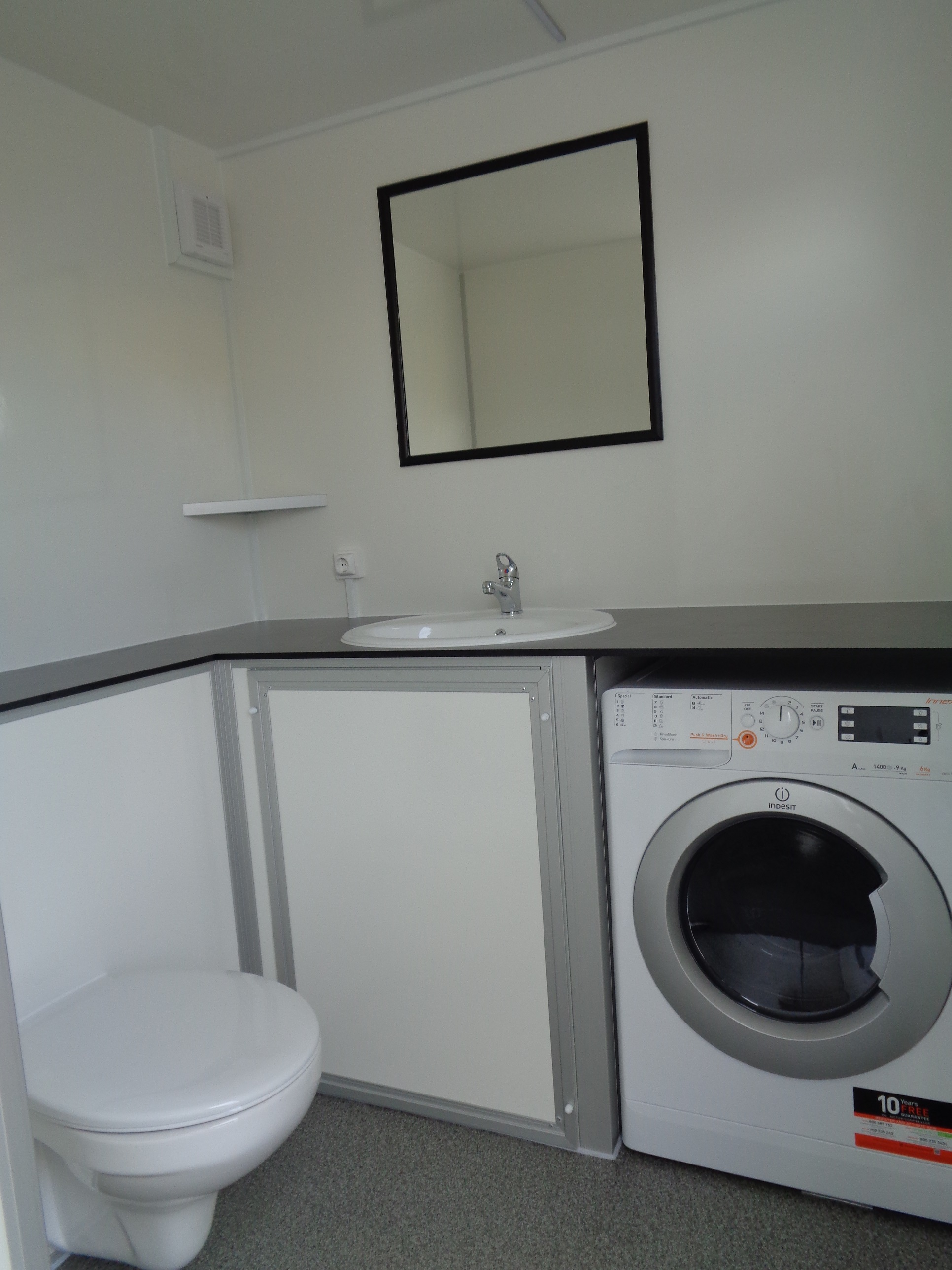 - Indrettet med bruser, vandskyllende toilet, håndvask samt kombi vaskemaskine / tørretumbler