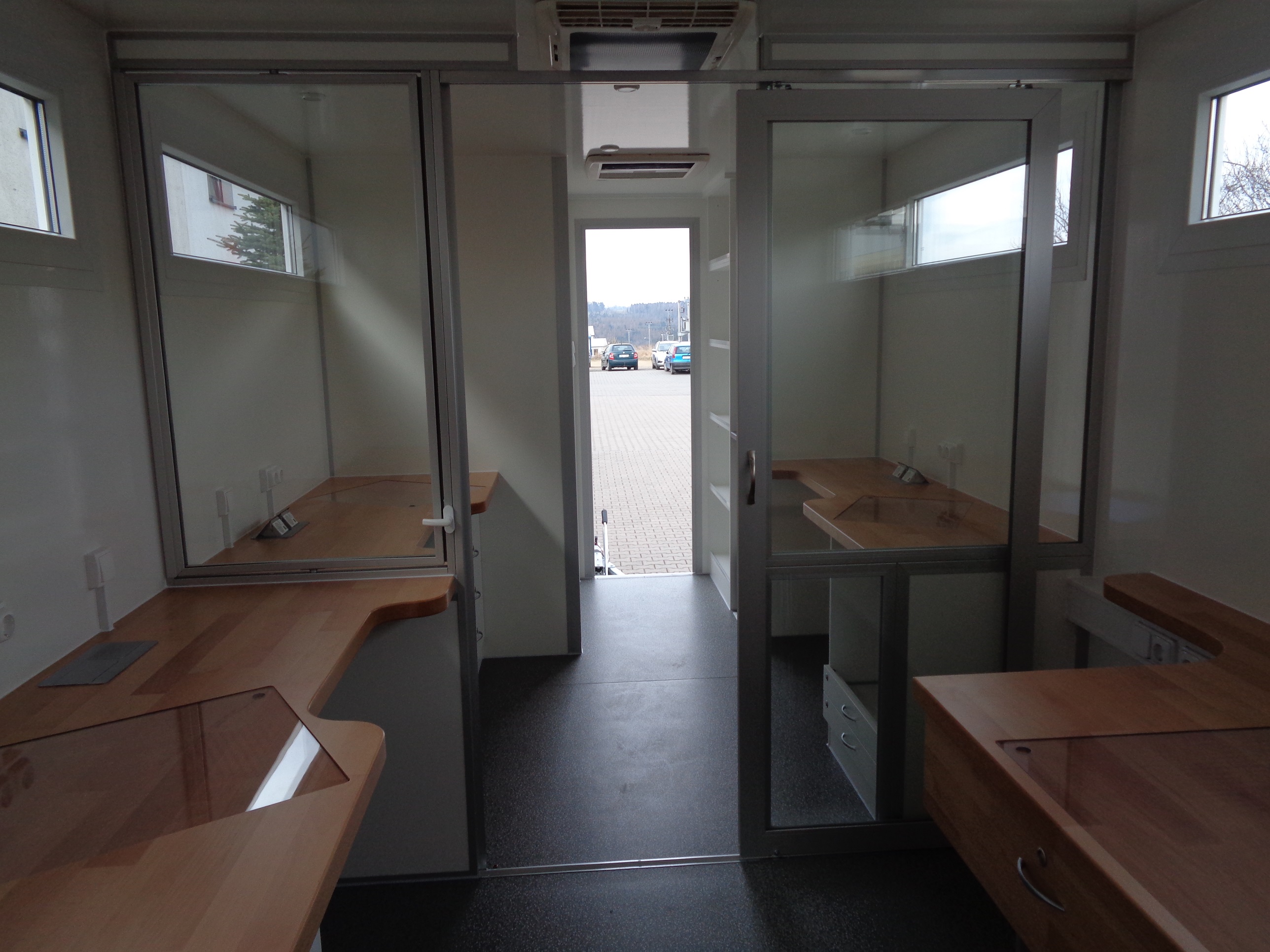 - Indrettet med fastmonterede skriveborde