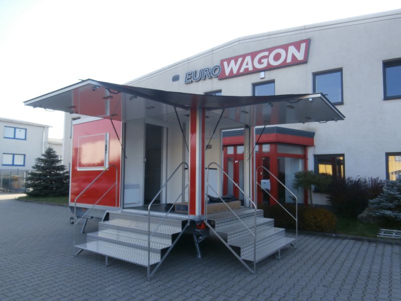- Kontor med køkken i det ene hjørne + rum med sideklap og brede VIP trapper med gelænder