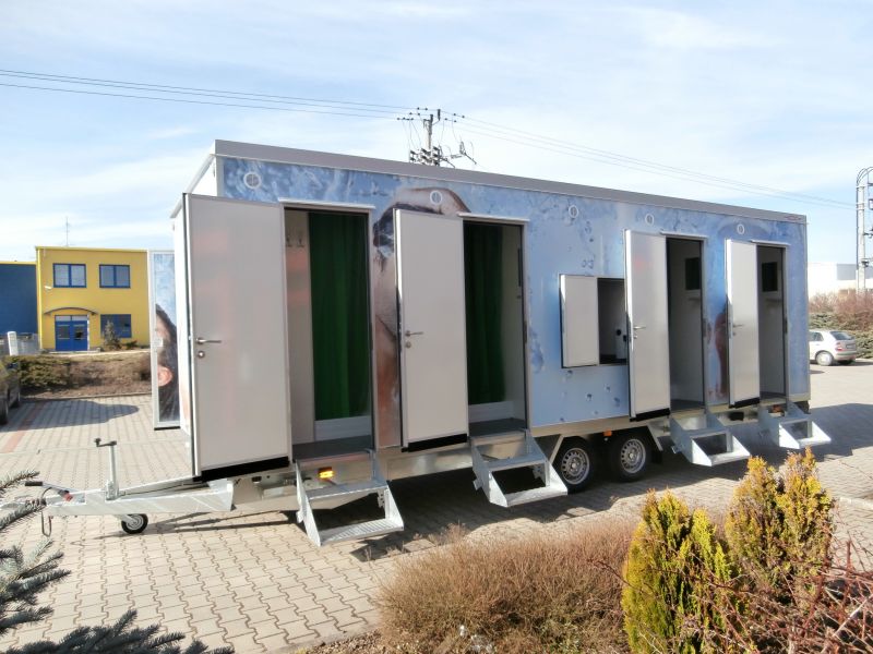 Sanitární přívěs Typ 8xVIP DUSCHE-73. Osm sprch se samostatnými vchody.