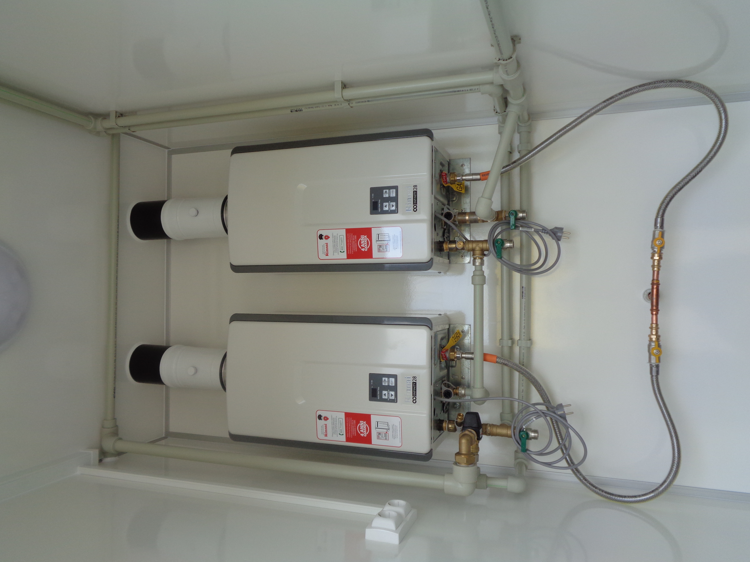 plynový průtokový ohřívač Rinnai + plynový regulátor Continental