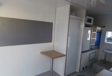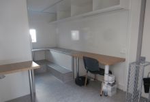 - office equipped with desks, benches, shelves, drawers, microwave oven, fridge and drying cabinet