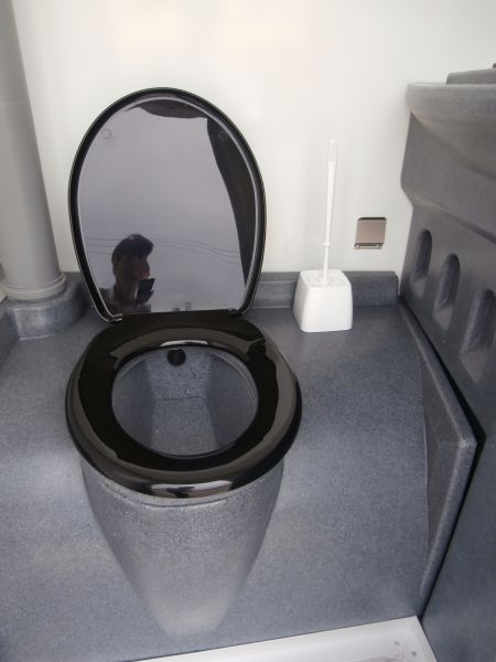 Container equipped with tank toilet system. Flushing is provided with help of the hand pump.