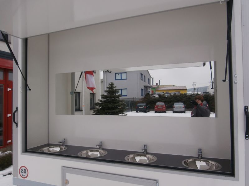 12-shower-wagon equipped with RINNAI gas flow heater. Entrance into the shower rooms over the stage stairs.