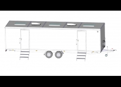 V naší mobilní maskérně budou mít vaše maskérky k dispozici vše, co pro svou práci potřebují: maskovací pulty, úložné prostory, kadeřnická křesla, nádrže na čistou a odpadní vodu, pračku, klimatizaci atd. Správné vybavení a dostatek prostoru jsou totiž základem pro to, aby herci vyšli z maskérny na plac dokonale upravení. Prohlédněte si naše reference vyrobených přívěsů.