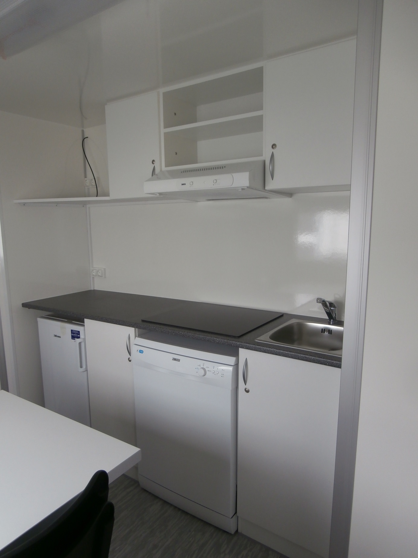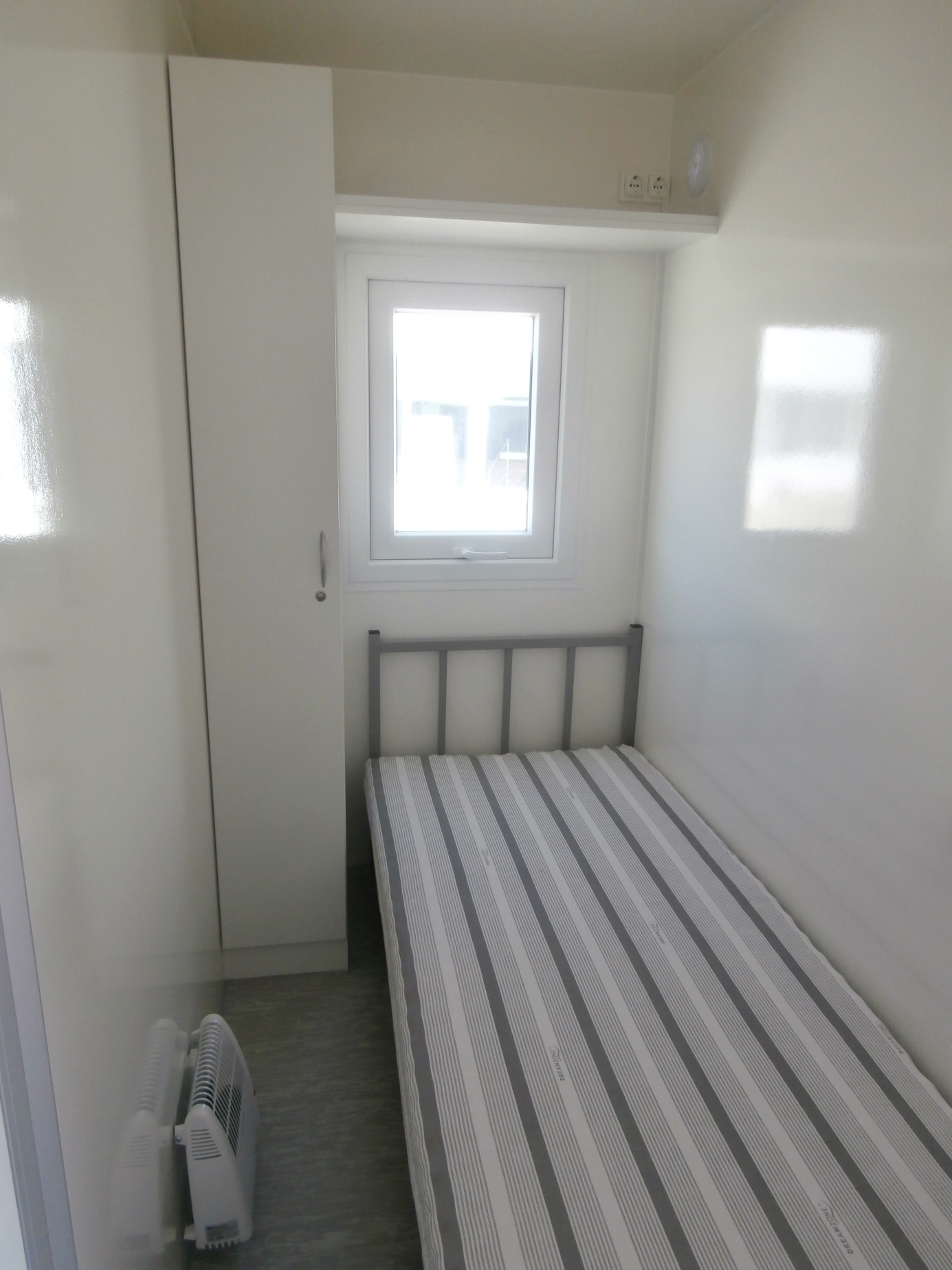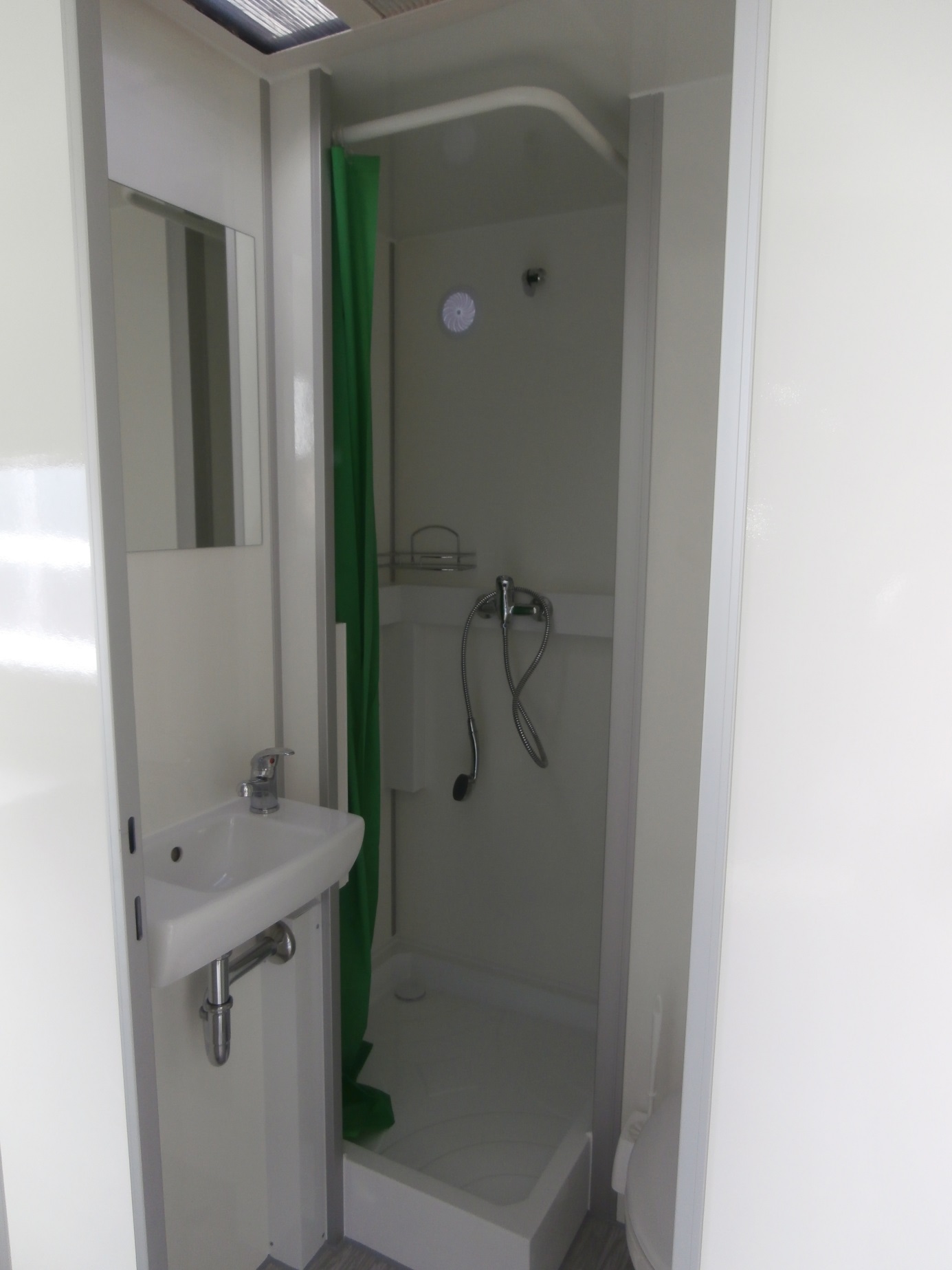 Accommodation for 4 people, electrically heated mobile unit – equipped kitchen with accessories (dishwasher, cooker hood, electric cooker, fridge, coffee maker, TV 19"), 4 separate bedrooms with beds, bathroom with toilet, shower and wash basin including a mirror.