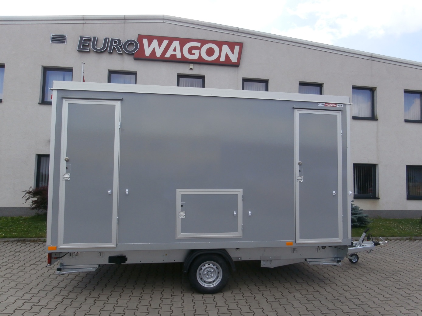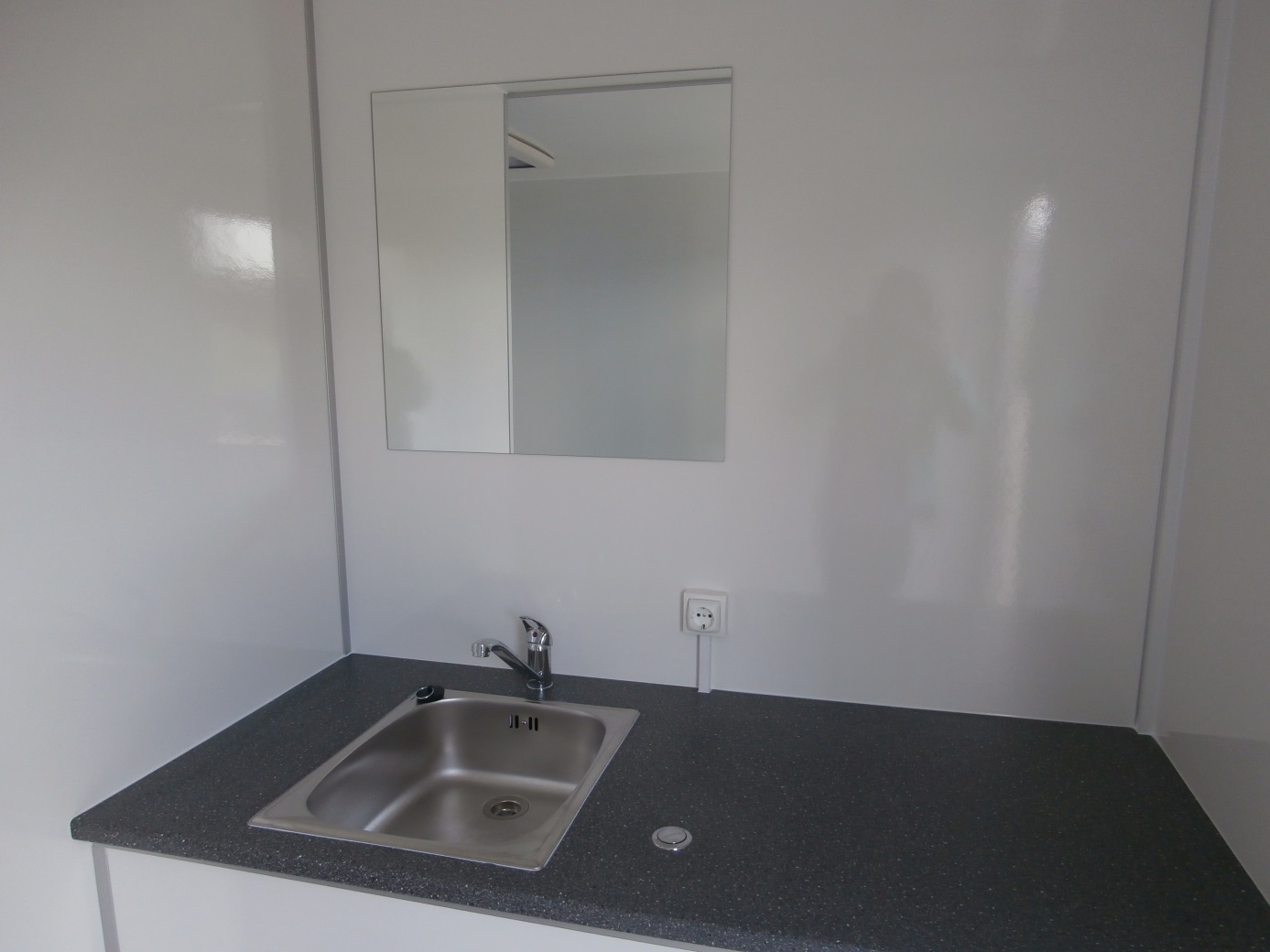 Two mobile bathrooms, electrically heated, equipped with toilets, showers, wash basins including mirrors.