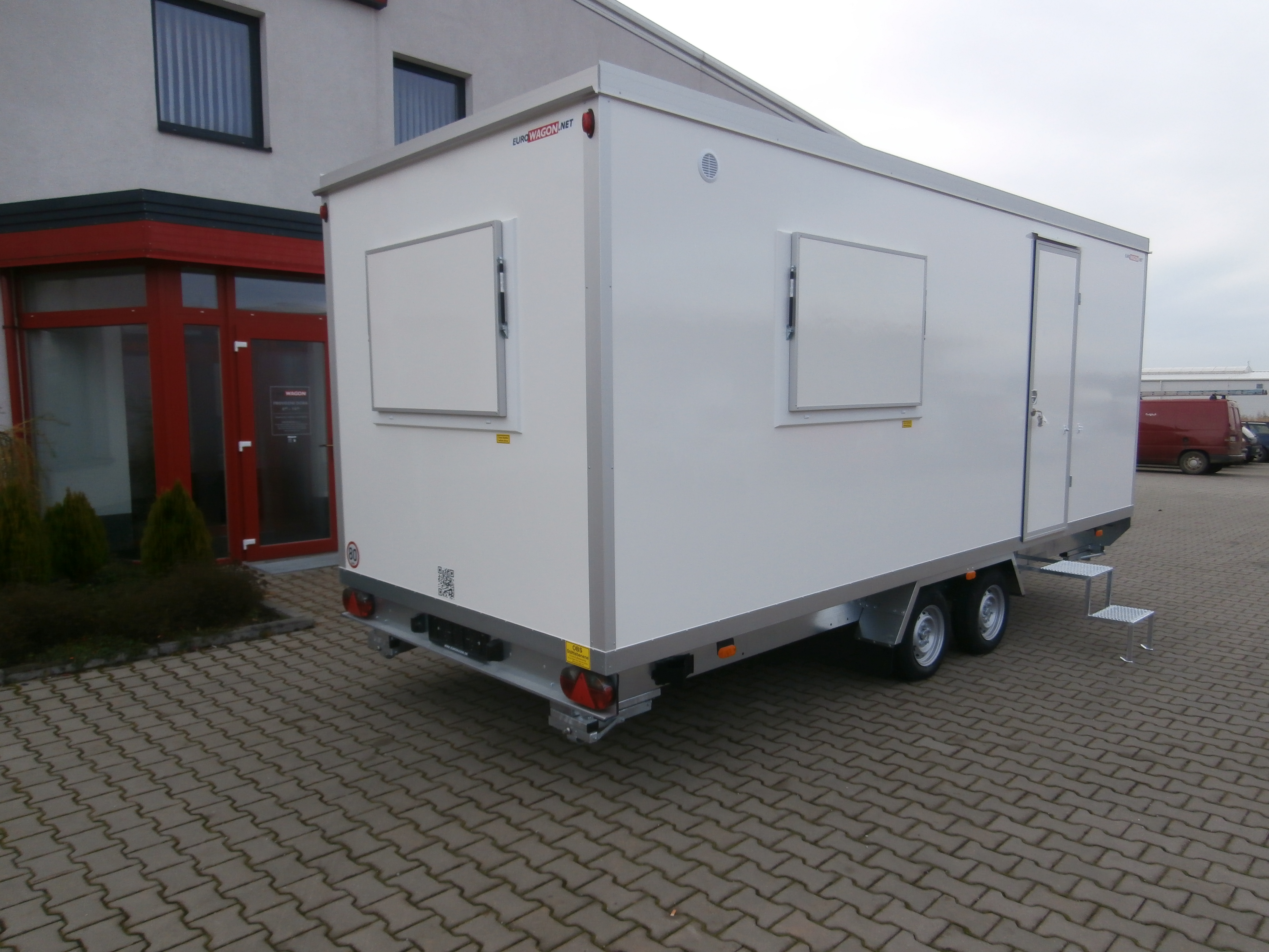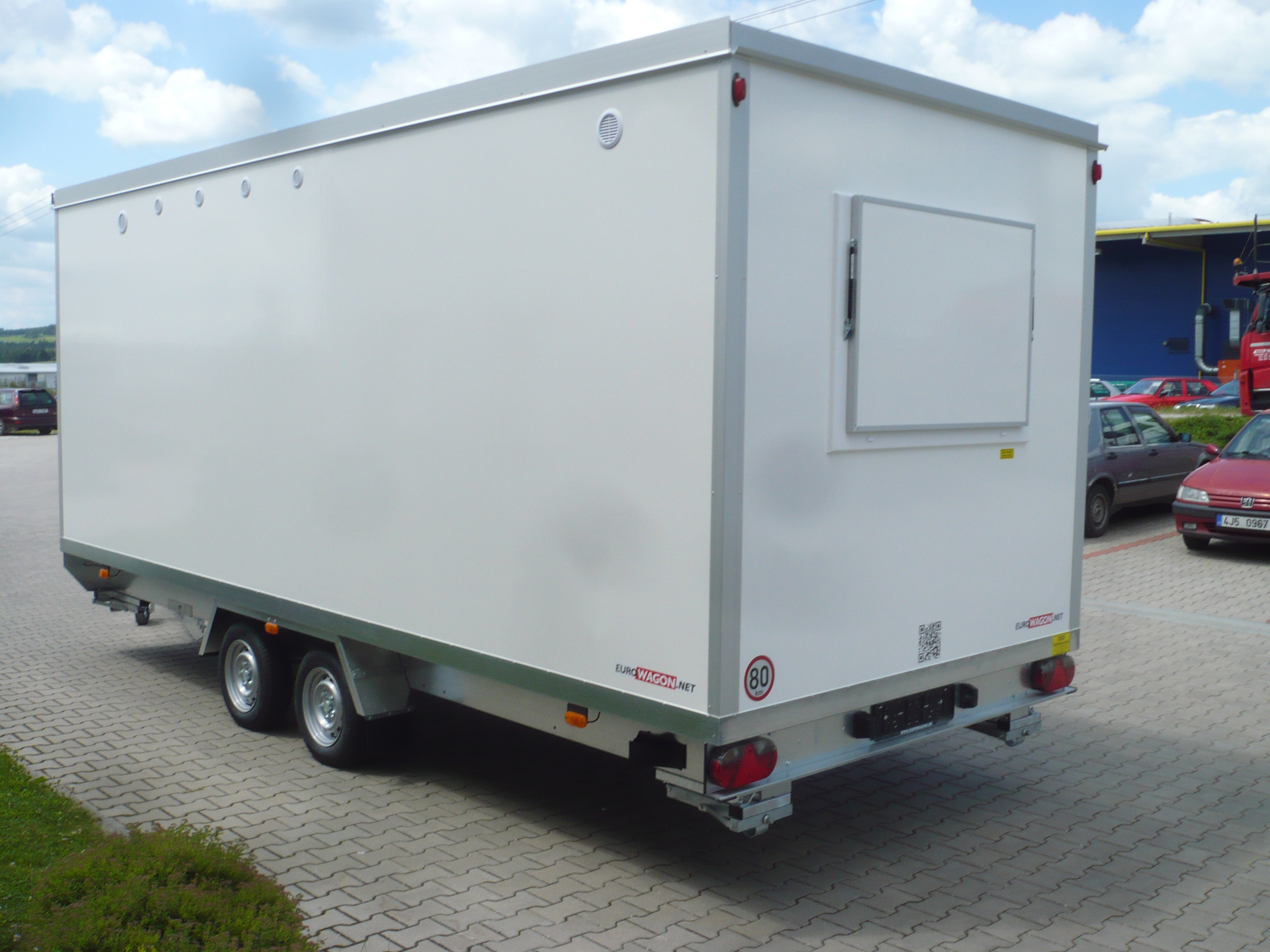 Mobile unit for 10-12 people, electrically heated, equipped with shelfs and cork noticeboard (without WC).