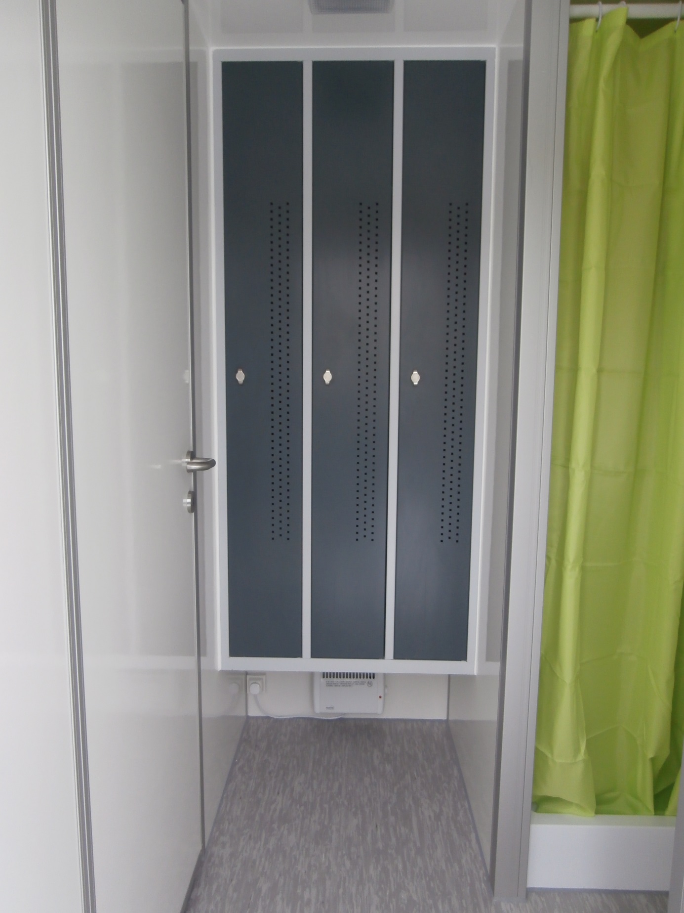 Welfare trailer for 3 people working with dangerous substances. Unit is electrically heated – equipped with office/dining room with fridge, walking through shower, toilet and wash basins including mirrors.