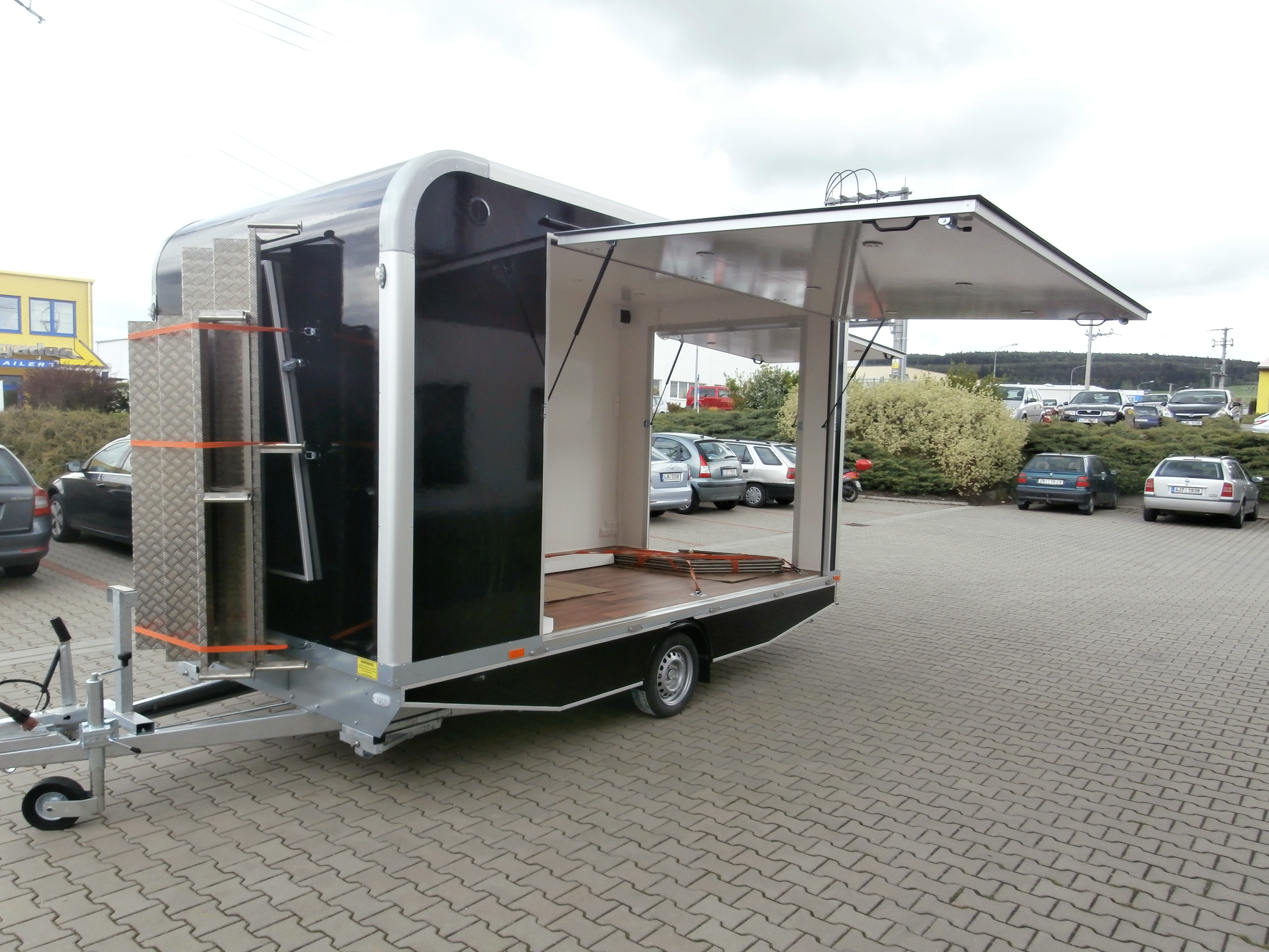 Promotion trailer equipped with one side flap.