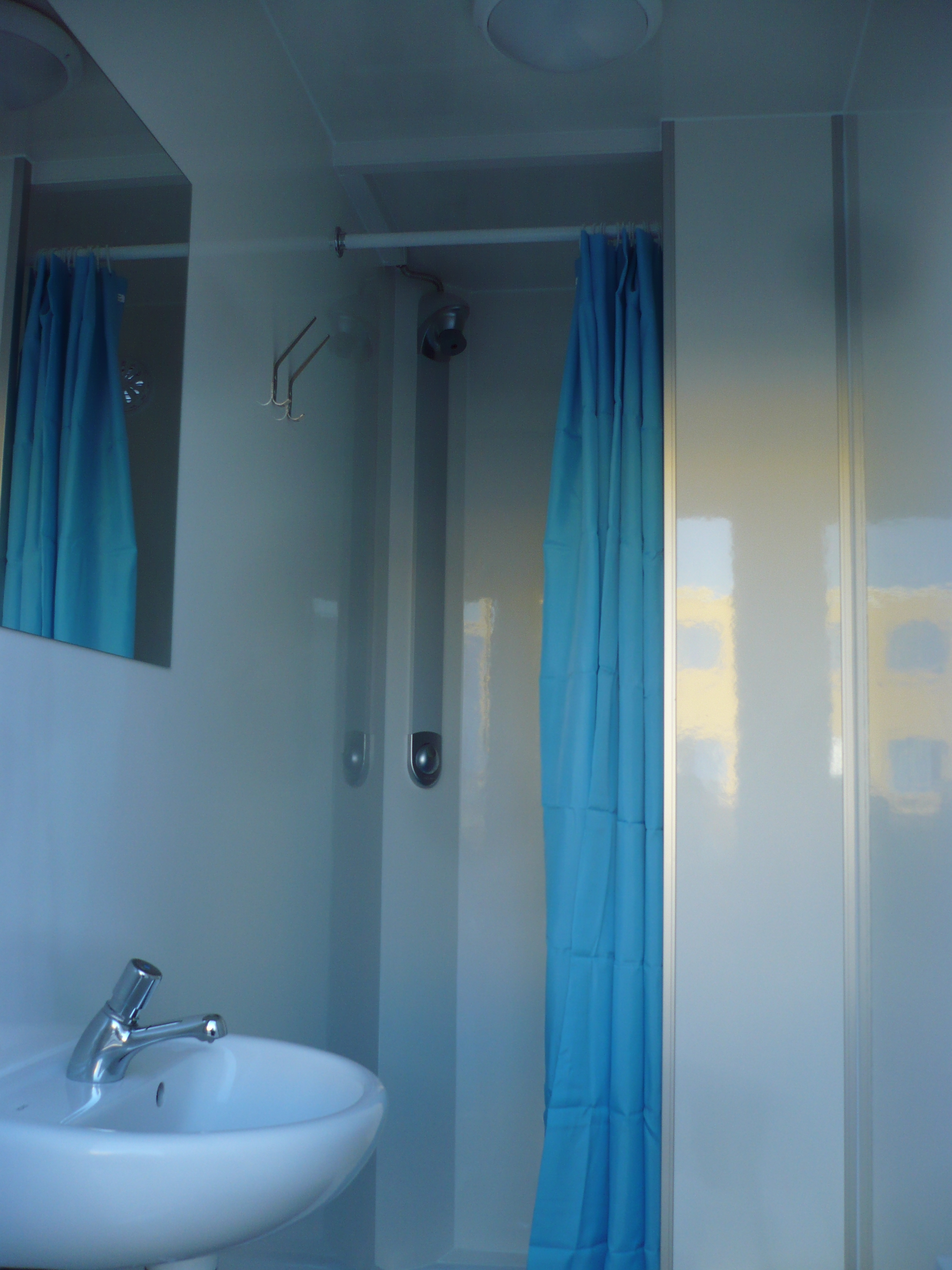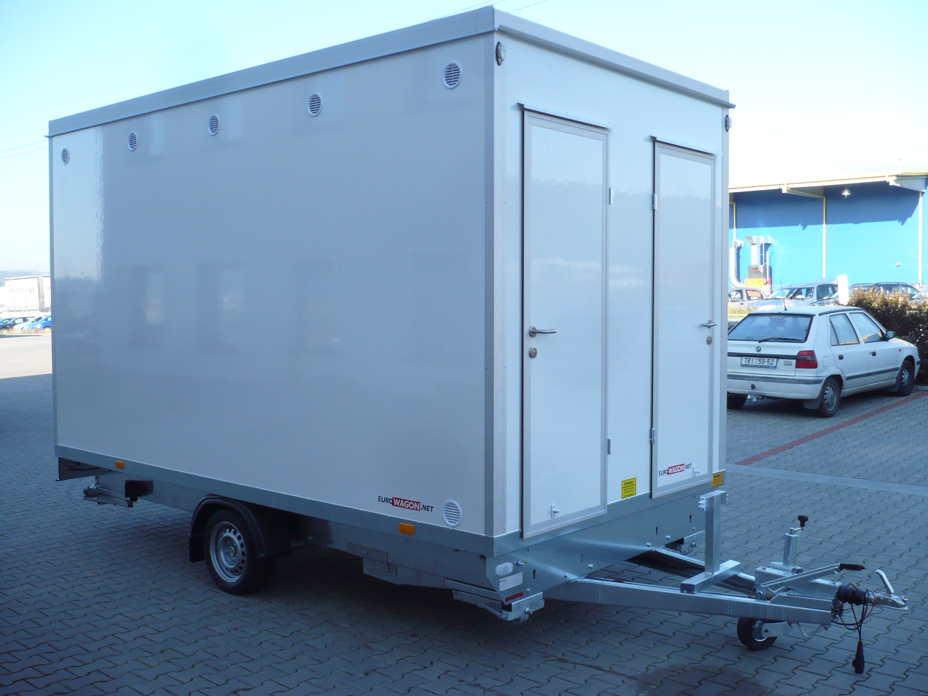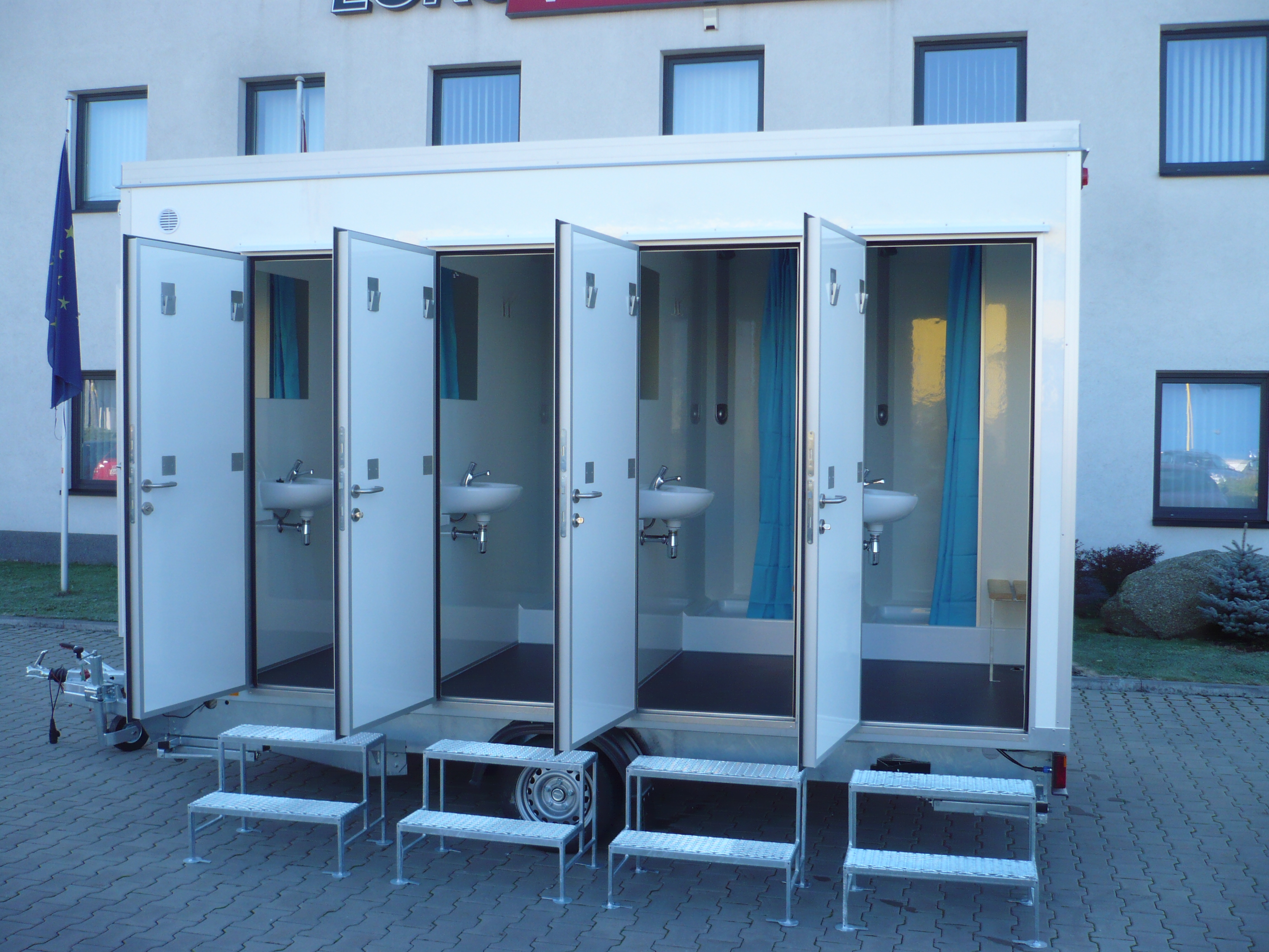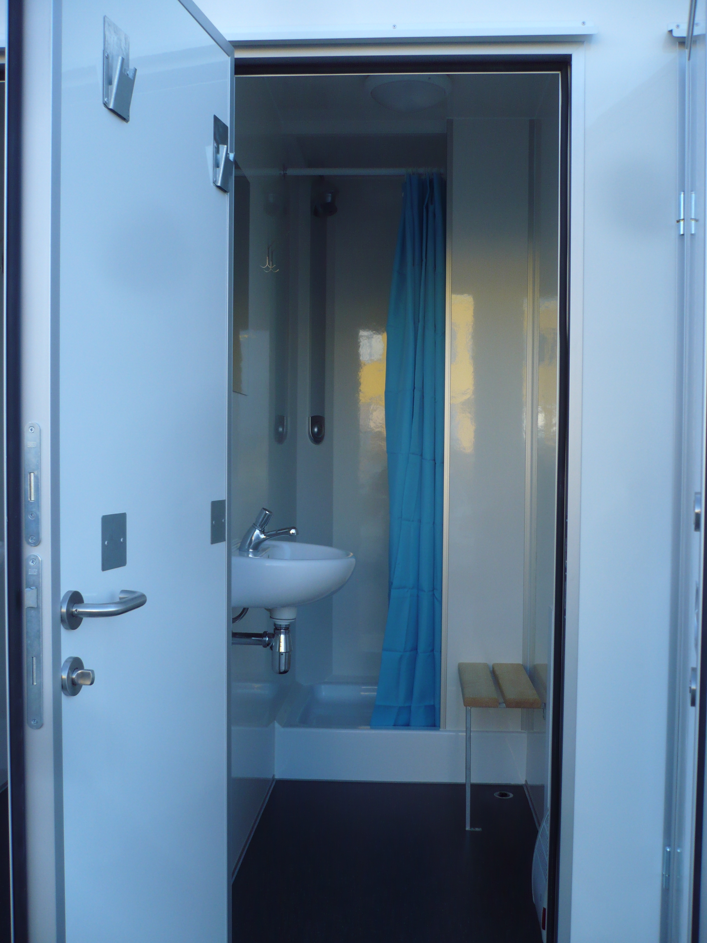 Sanitary mobile unit - electrically heated, equipped with 4 separate showers and wash basins including mirrors.