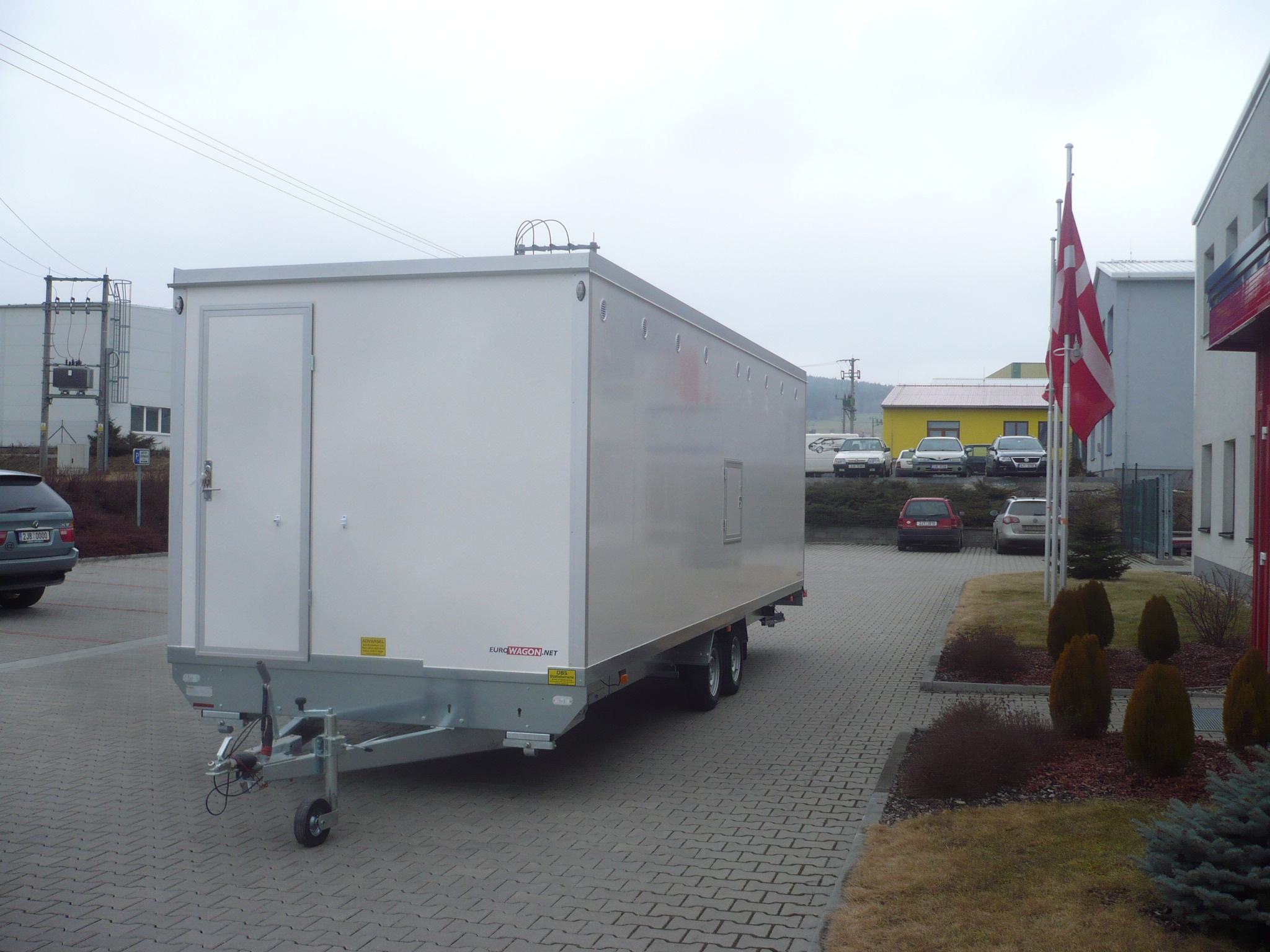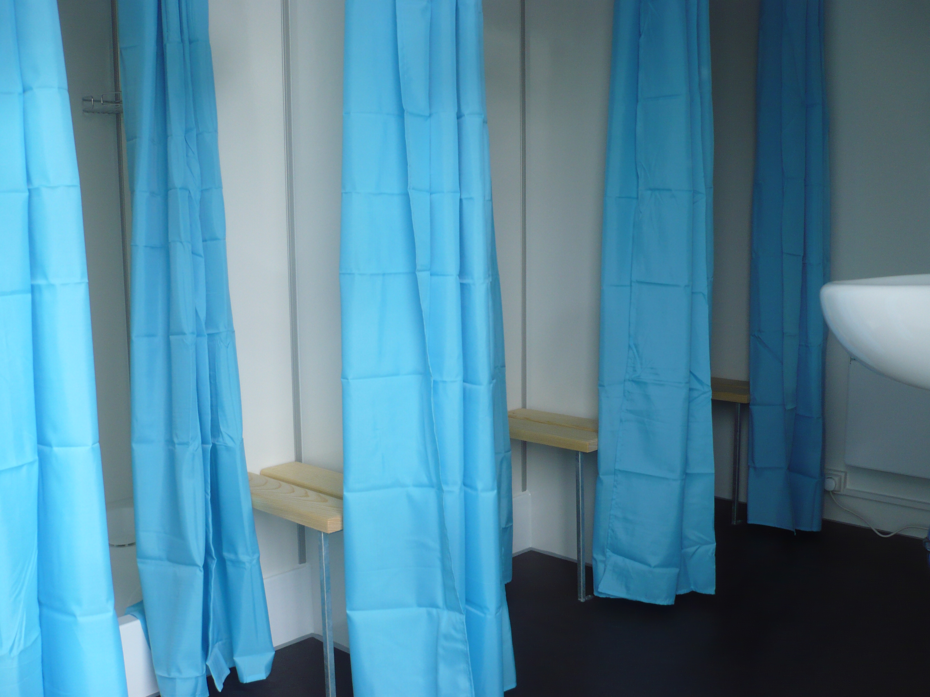 Sanitary trailer – mobile showers - electrically heated, equipped with 8 showers and wash basins including mirrors.